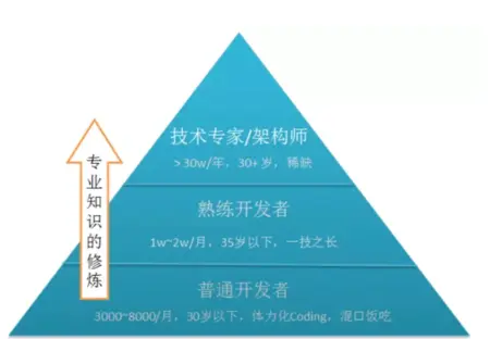 而要想从底层向上跃迁,成为熟练的开发者或者技术专家、架构师,最可行的方法就是:修炼专业知识。