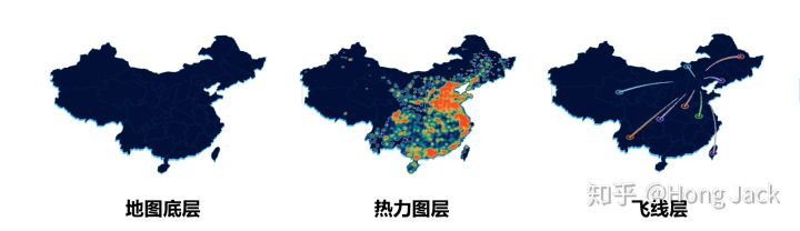 关于飞线层的具体实现,大家可以点击查看:数据可视化之下发图实践,篇幅有限,这里就不再重复叙述啦。