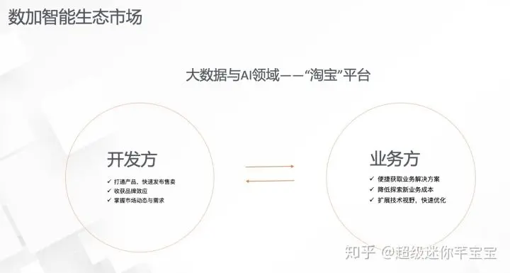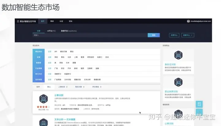 智能生态市场是大数据和AI领域的一个淘宝平台,其最大的作用是连接了开发方和业务方。在此之前,开发方有自己的能力和技术,业务方有需求和想要解决的问题。但两方一直没有办法很好的连接在一起,通过数加智能生态市场平台,将开发方的技术和业务方的需求进行对接,两方都可以通过平台获取利益。首先,开发方可以打通产品快速发布售卖,收获品牌效益,同时掌握市场动态需求。另外,业务方可以通过智能市场更便捷的获取适合自己的业务解决方案。同时降低探索新业务的成本,还可以扩展基础事业,快速实现公司技术的优化。