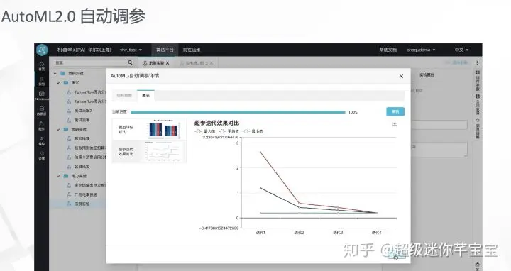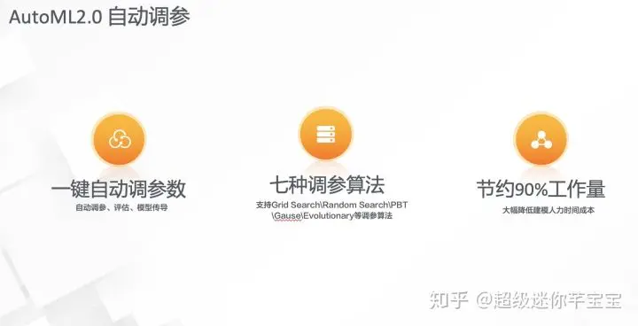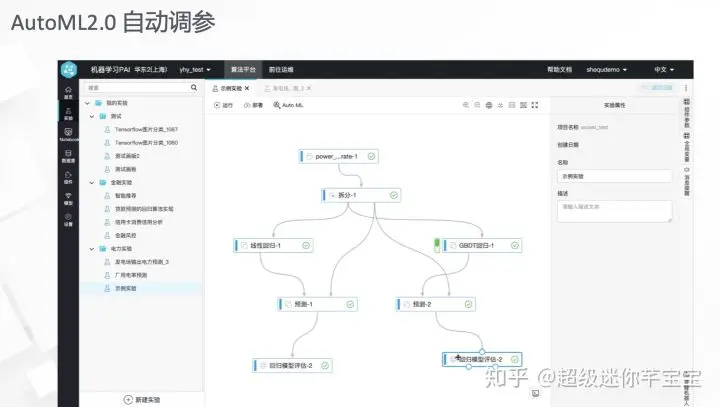AutoML自动调参功能是PAI-Studio中的核心功能。PAI-Studio可以进行可视化的建模操作,但模型构建好之后,如何进行参数调整,并达到最好的实验效果,是用户经常面临的问题。AutoML即以此为目的,解决实验的调参问题。AutoML2.0自动调参功能包含三大特性。首先是一键自动调参数,包括自动调整参数、模型评估和模型传导。此外,AutoML2.0支持七种调参算法,如GritSearch、Random Search、PBT、Gause、Evolutionary等常见的调参算法。实践证明,AutoML2.0可以帮助用户节省90%的工作量,大幅降低了用户在建立机器学习模型过程中所花费的时间以及人力成本。