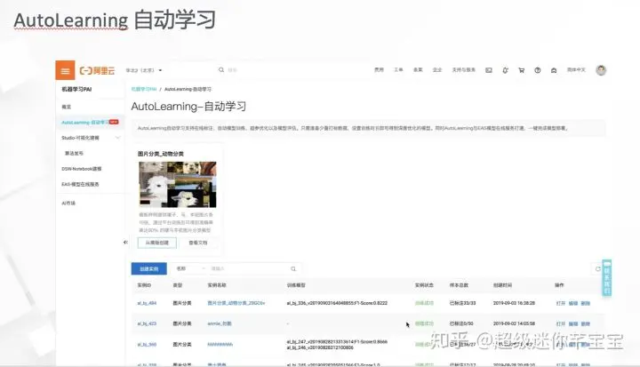PAI-AutoLearning自动学习功能是PAI最新推出的功能之一。在AutoLearning自动学习功能出现之前,PAI中的PAI-Studio,PAI-DSW分别为中级算法工程师和高级算法工程师对应解决了他们的实验构建需求。而PAI-AutoLearning则通过提供小白级、零门槛的一个工具,解决了初级或入门级算法工程师的实验构建需求,使更多的人参与到机器学习,使用机器学习为自己的业务带来价值。AutoLearning自动学习功能有以下亮点。首先是零门槛使用,即功能开箱即用,对于小白同学特别友好。其次是最低基于5张图片就可进行一次学习。通过强大的迁移学习框架,PAI-AutoLearning可实现少量数据的有效学习,学习训练的结果依然非常出色。第三个亮点是AutoLearning实现了一站式解决方案。一站式包括从数据标注、模型训练、模型部署的整个过程,帮助小白用户也可以快速地入门机器学习的实际应用。