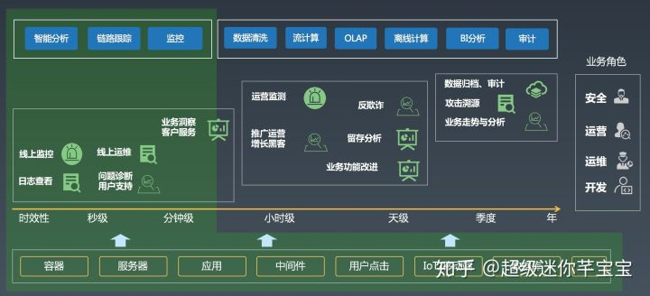 在CNCF中,可观察性的主要作用是问题的诊断,上升到公司整体层面,可观察性(Observability)不仅仅包括DevOps领域,还包括业务、运营、BI、审计、安全等领域,可观察性的最终的目标是实现公司各个方面的数字化、智能化。