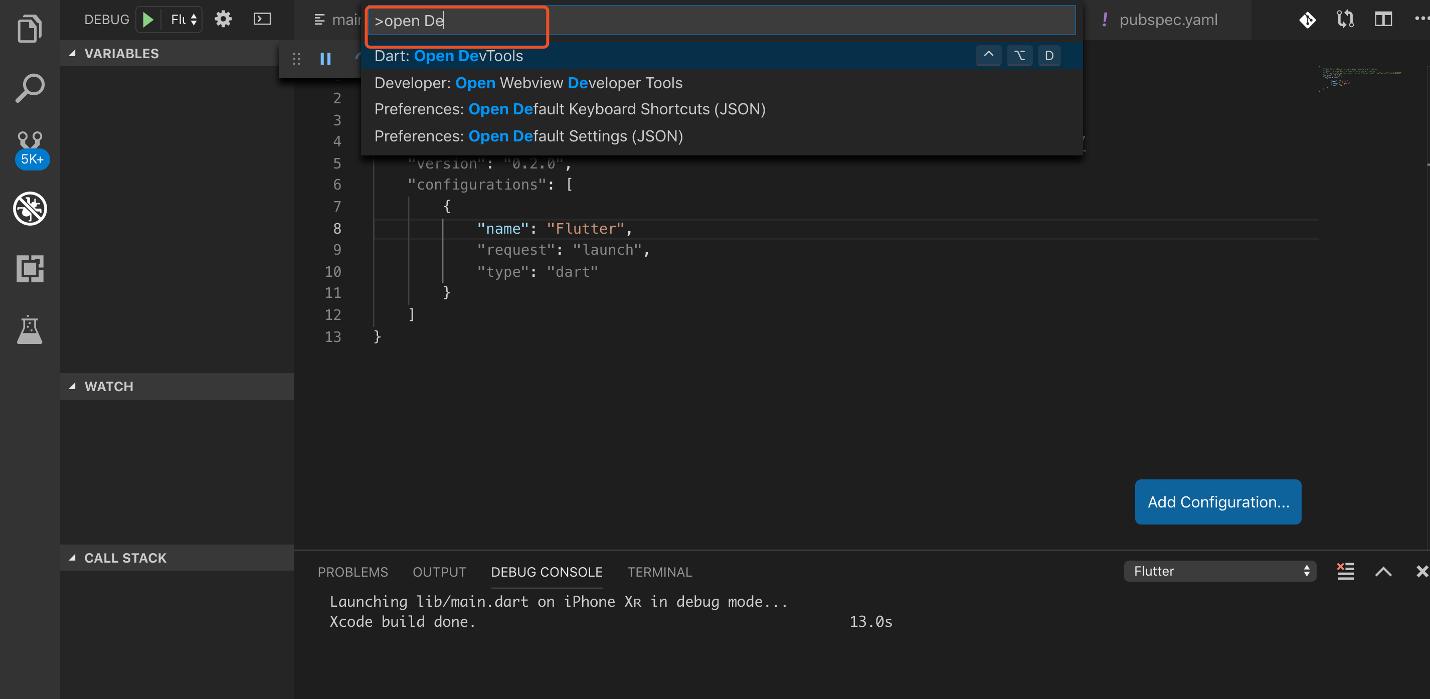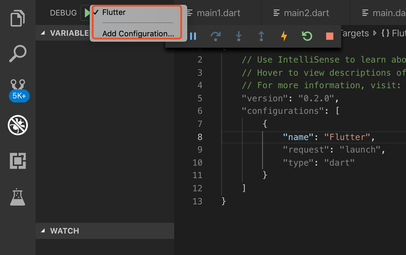 2、然后点击debug断点,第一次会提示你选择语言,选择Dart&Flutter即可,我下面这个是选择完调试语言之后的页面