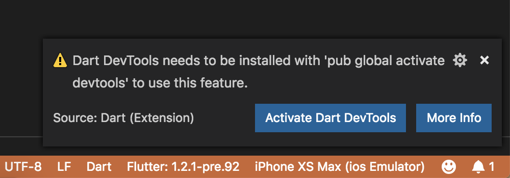 这个是让你激活Dart DevTools工具,可以直接点击左侧的激活按钮,会自动在浏览器上打开调试页面,如下: