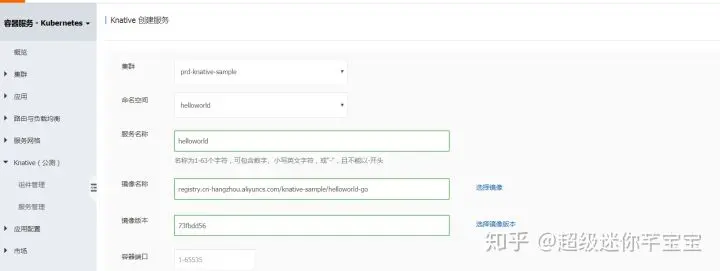登录阿里云容器服务控制台,创建 Knative 服务。