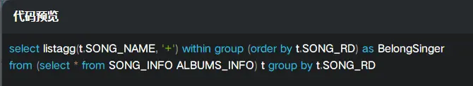 select listagg(多行转单行的列,分隔符) within group(order by 按哪一列分组) from tmp t group by 按哪一列分组
