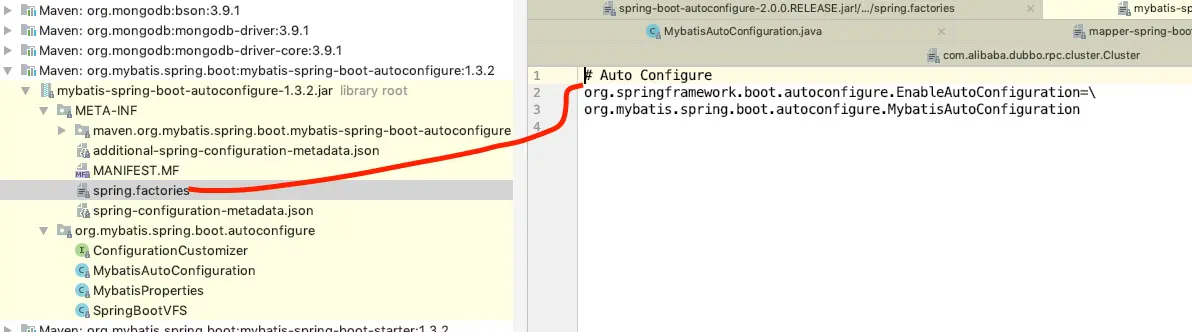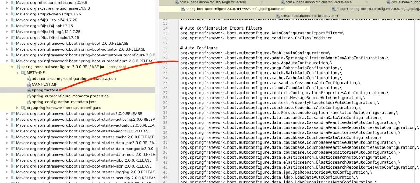 在spring中也有对应的spi机制,下图是 springboot 默认引入的服务实现