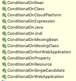 Condition条件注解的使用也是非常重要的一环,它也是一大堆(下图),具体的使用在后面的文章中进行补充;