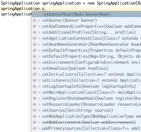 - SpringApplication 就可以在启动之前配置一些参数,比如: