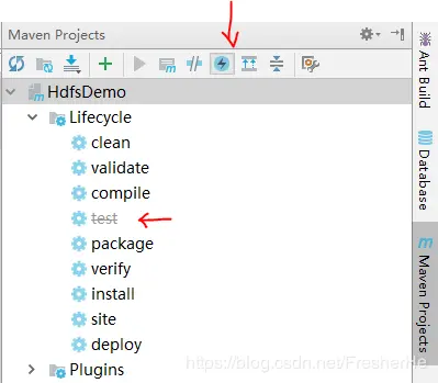 2、在右侧maven工具中,跳过test选项