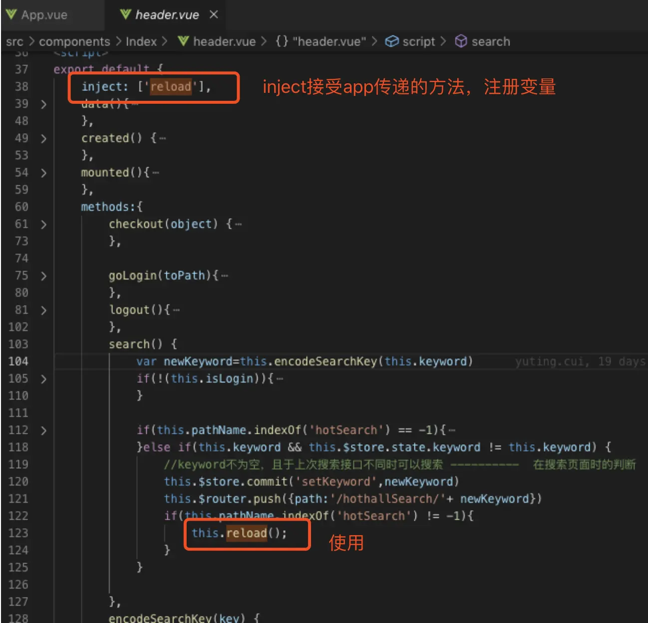 在App.vue,声明reload方法,控制router-view的显示或隐藏,从而控制页面的再次加载。(provide /inject )