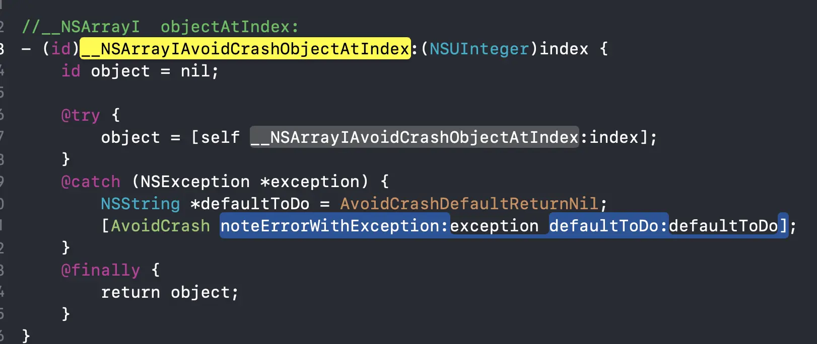 比如防护 [NSArray objectAtIndex:]具体下代码