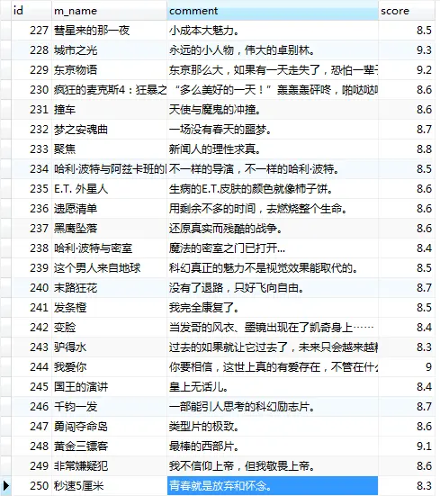 这里我需要的信息不多,所以只有电影名字,电影简介及电影评分。