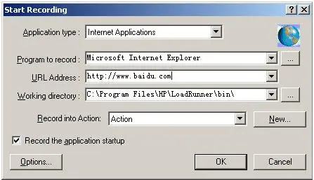 利用Virtual User Generator录制测试脚本,录制步骤: