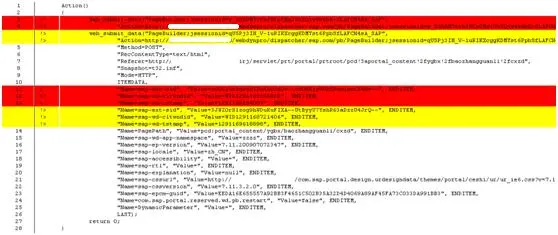 通过录制两份脚本,进行对比,可知jsessionid、sap-ext-sid、sap-wd-cltwndid、sap-wd-tstamp需要进行关联