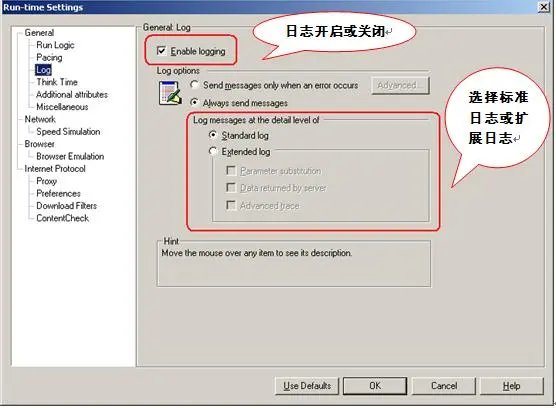 17.在VUGen中如何选择关闭日志。,如何选择标准和扩展日志