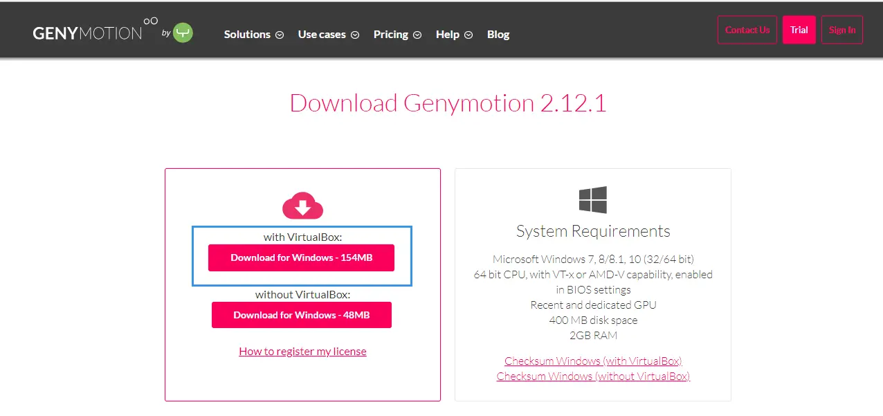 下载和安装Genymotion,需要先注册账号,登录后才能下载安装包