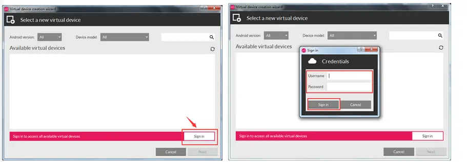 6.用户登录,输入在官网注册的账号密码即可。不然无法安装模拟器。