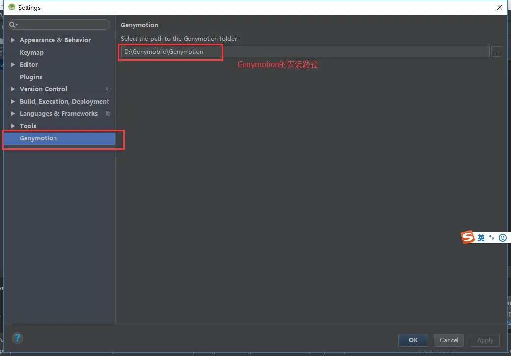 然后就是重启Android studio,重启后多了个新图标,点击那个新图标或者点击File/Setting/找到Genymotion,配置Genymotion的安装路径