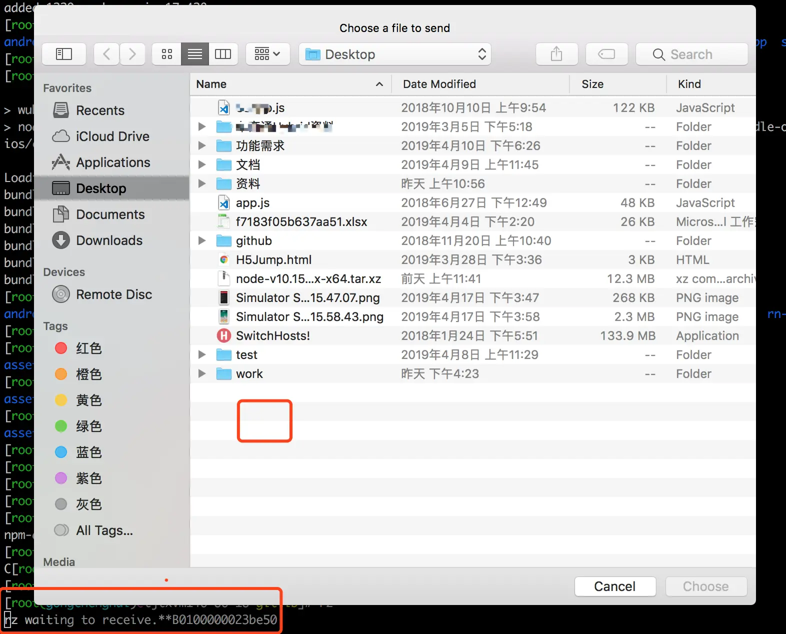 登录成功之后,直接在终端输入rz 回车 会弹出文件选择窗口,直接选中本地文件