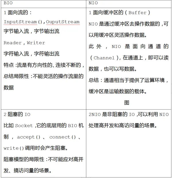 NIO(non blocking I/O)非阻塞I/O,jdk1.4引入的新I/O,平时接触的文件的I/O操作是BIO,即阻塞I/O