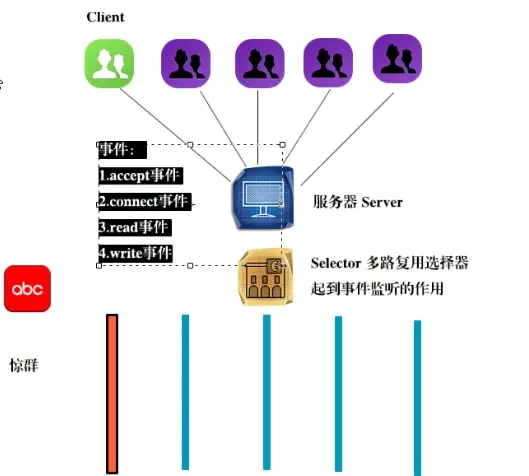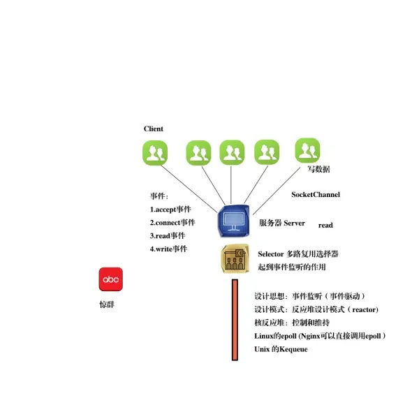 事件:1.accept事件、2.connect事件、3.read事件、4.write事件