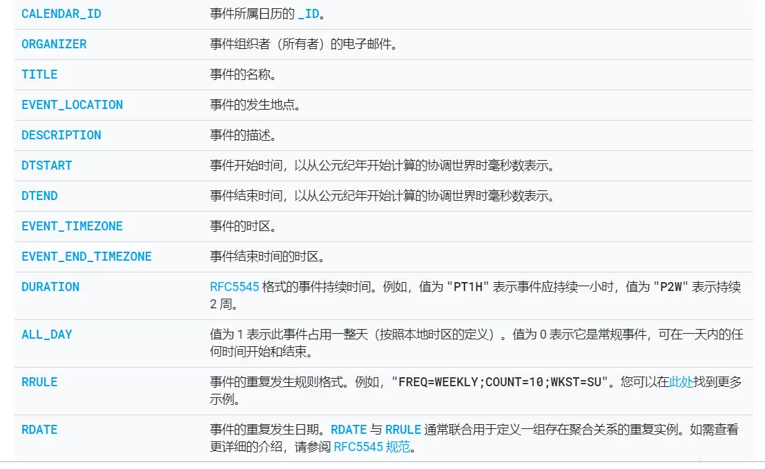 description = eventCursor.getString(eventCursor.getColumnIndex("description")); //获取日历事件 的描述