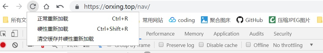 当你鼠标左键长按刷新按钮,就会出现下列选项,作用也是一样的,最后一个是清除缓存再刷新