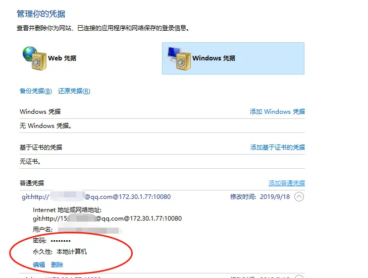 具体解决方式:打开控制面板=====》用户账户=====》管理windows凭据=====》找到git地址修改密码or账户