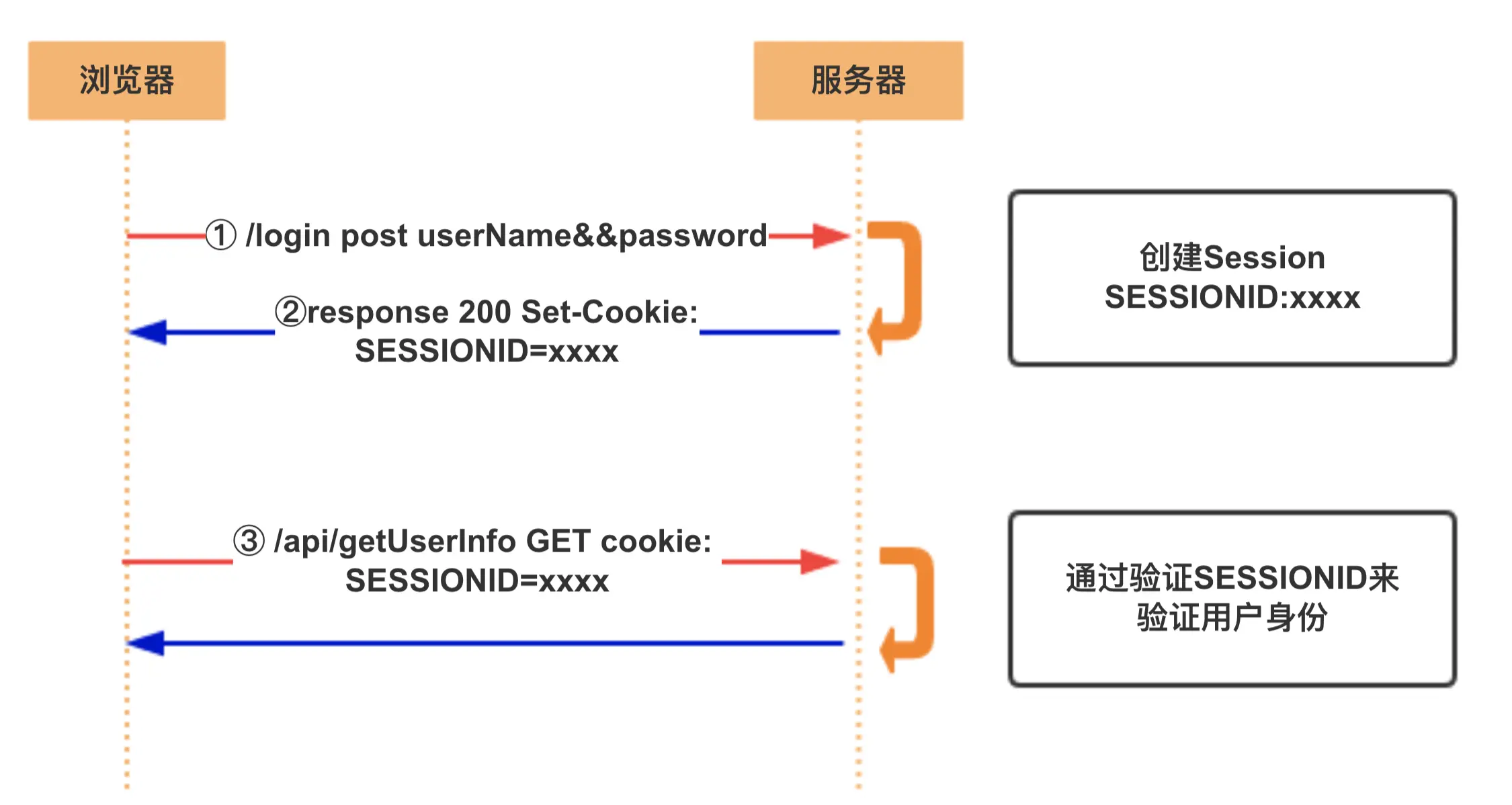 - 步骤 3:客户端接收到从服务器端发来的 Session ID 后,会将其作为 Cookie 保存在本地。下次向服务器发送请求时,浏览器会自动发送 Cookie,所以 Session ID 也随之发送到服务器。服务器端可通过验证接收到的 Session ID 识别用户和其认证状态。