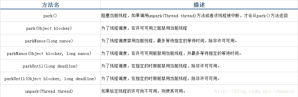 park 方法和 unpark(Thread thread) 方法,都是成对出现的。同时 unpark(Thread thread) 方法,必须要在 park 方法执行之后执行。当然,并不是说没有调用 unpark(Thread thread) 方法的线程就会一直阻塞