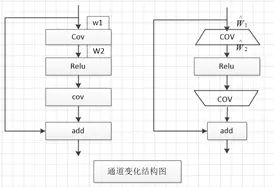 恒等映射(identity mapping pathway)。意思也就是在不增加参数的情况下扩大激活层的输入通道数,其具体结构如下图(通道变化结构图)。假设W1表示卷积的输入通道,W2表示卷积的输出通道也就是Relu函数使用时的输入。现在我们假设,其中r表示通道需要扩大的倍数。则对于EDSR中使用的激活(左边的图),其需要的参数为:,此时相当于r=1。对于右边的计算方式此时需要的参数量为: