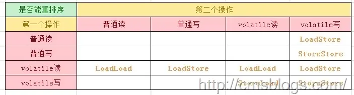 为了实现 volatile 内存语义,JMM会重排序,其规则如下: