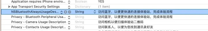 关于NSBluetoothAlwaysUsageDescription上传失败的问题 厚脸皮打不死的小强 2019-09-19 1,413 阅读1分钟 是不是编译多次重新提交也不行,是不是升级xcode也不行 其实是你们添加的方式不对 只需要在info.plist文件中添加NSBluetoothAlwaysUsageDescription,而不是 Privacy - Bluetooth Peripheral Usage Description