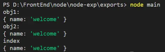 现在我们分别改写module.exports和exports导出对象,然后在main.js中引入index.js,查看导入的对象。