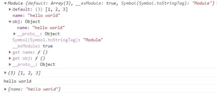 其中default表示默认导出,对应数组arr,name和obj分别表示导出的name和obj变量。