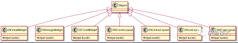 在第一个版本的设计中,我们考虑的比较简单,所有的组件都继承与Object,实现一个build方法,根据DSL转换的nodeData设置Widget的属性: