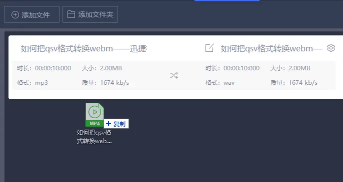 1、首先就是把mp3音乐文件添加到迅捷音频转换器中,至于添加文件的方法也是有多种的。点击添加文件或者添加文件夹按钮导入mp3音乐。还一个就是选择文件然后拖拽到软件中。