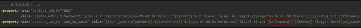 使用Logback的MDC机制日志模板中加入traceId标识,取值方式为%X{traceId}
