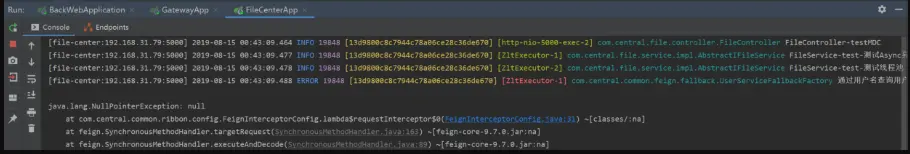 显示的traceId与网关相同,这里特意模拟发生异常的场景