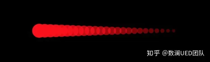 如下图,其实实现飞线具体头部深、尾部浅效果可以通过绘制若干透明度逐渐递减的圆来达到。(Echarts飞线使用类似思路)