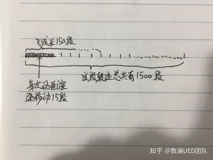 首先需要确定绘制飞线是由多少段小线段组成的(实际是由多少个圆相临近堆叠成的),接着我们就可以按照由浅及深的顺序开搞了。