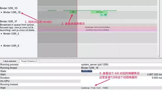 查看对应的 Binder:1295_1E , 看看是哪个线程唤醒这个线程。