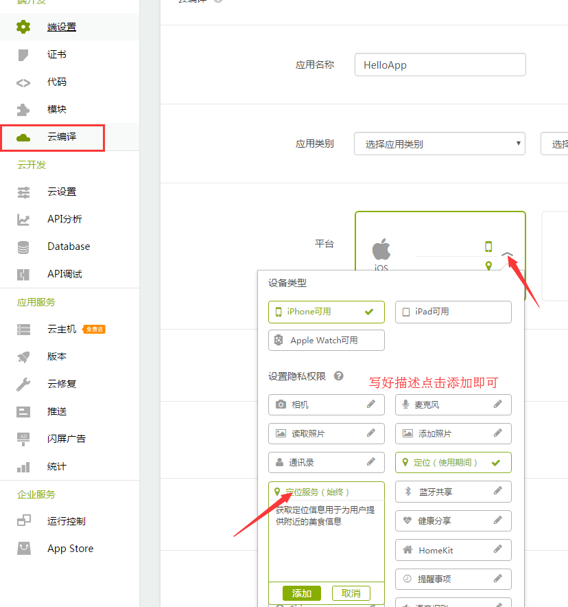 下面介绍两个常用Windows开发iOS工具的修改权限说明入口及例子!修改后重新打包上传审核!