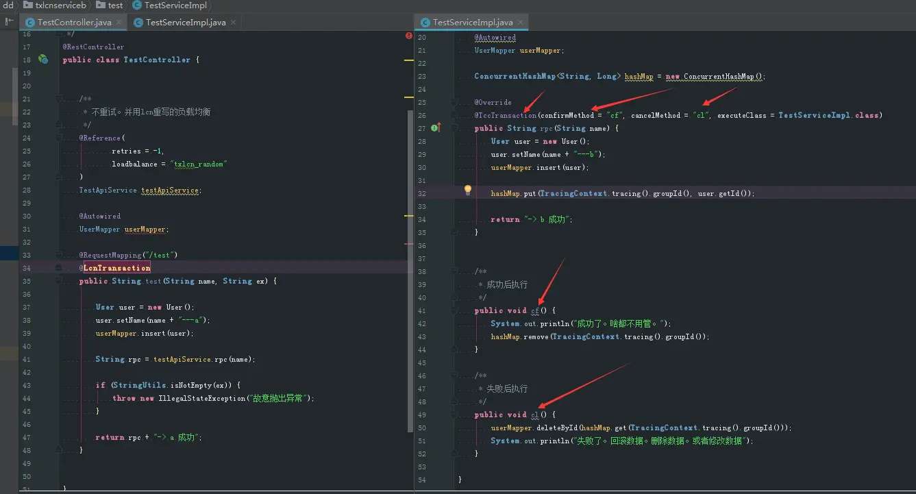 1.流程、逻辑不变。把b项目中的@LcnTransaction换成@TccTransaction注解