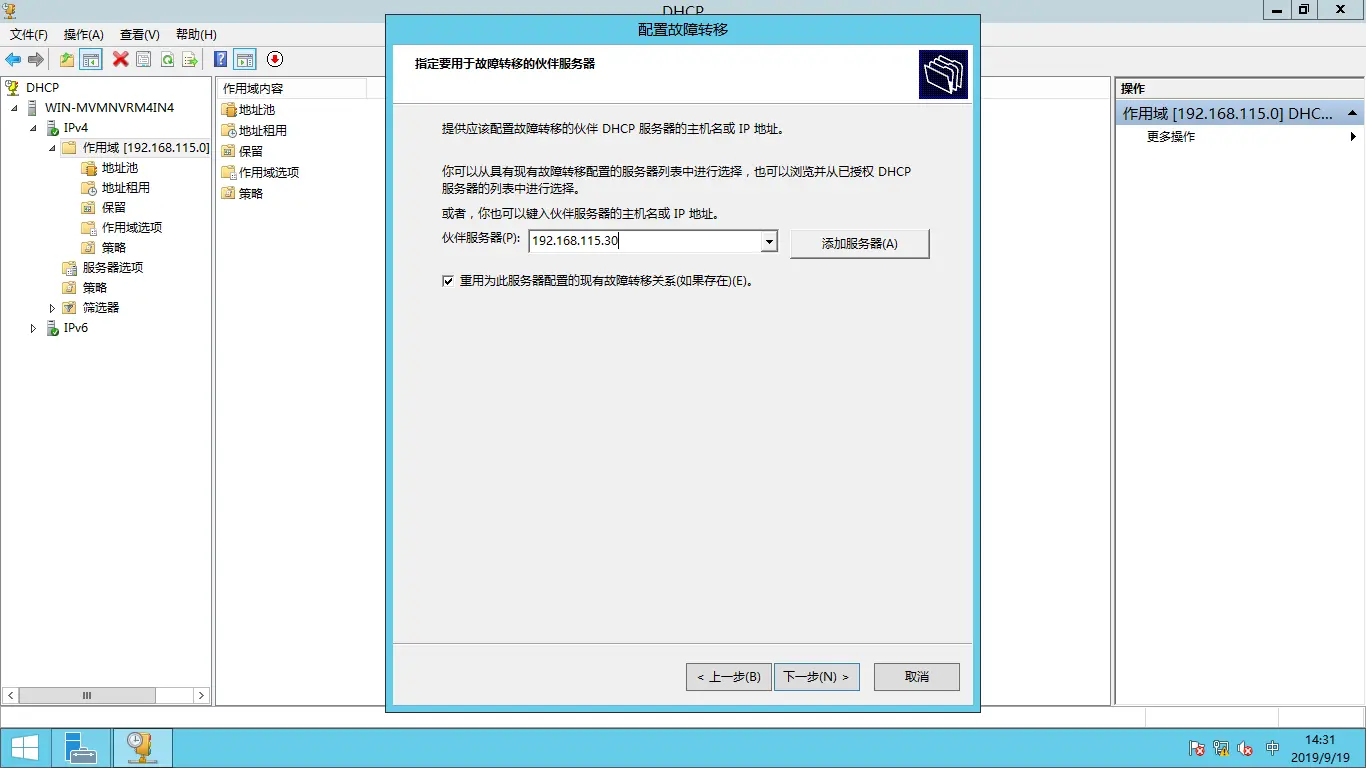 在主虚拟机和备用虚拟机安装DHCP服务器,步骤跟安装DNS服务器一样,传送门