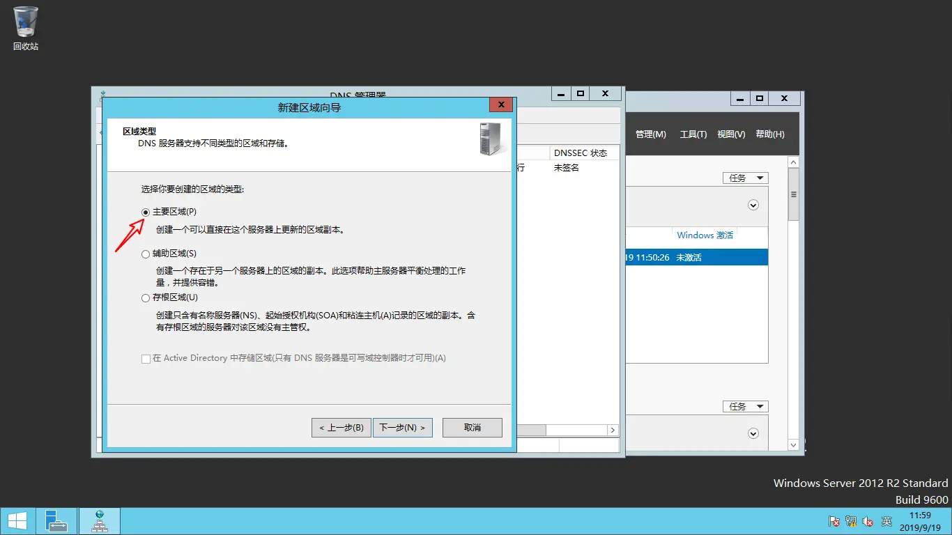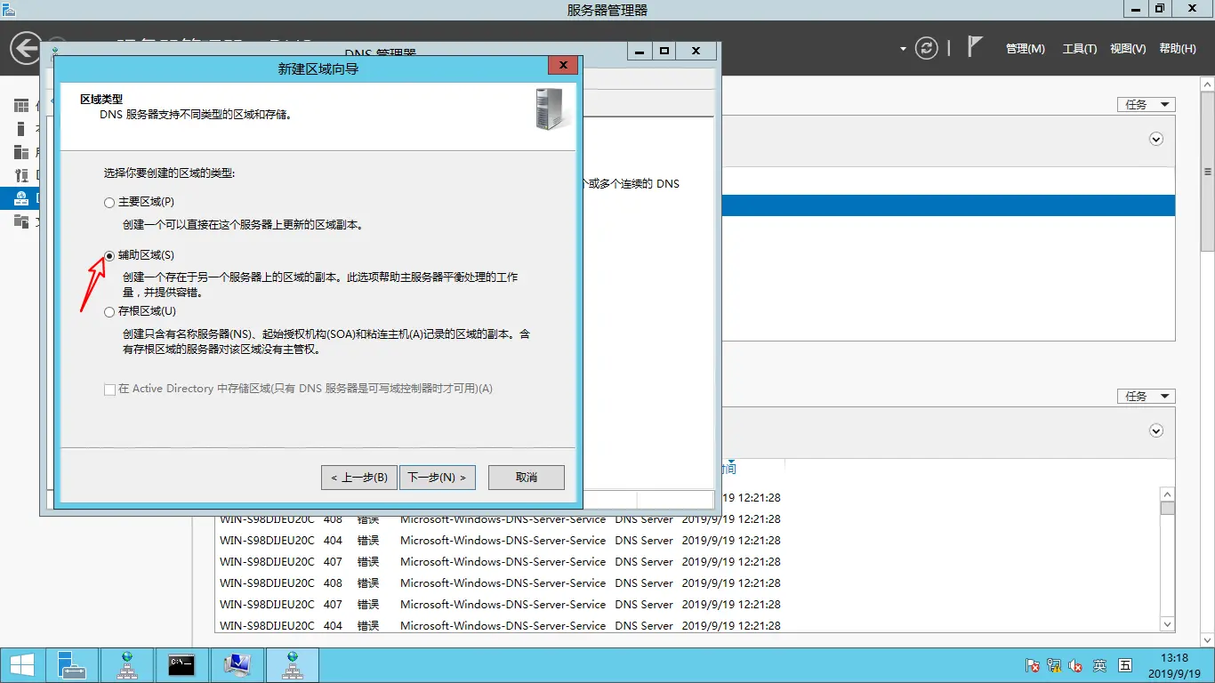 在备用主机上安装DNS服务,步骤跟主机一样,这里创建的是辅助区域
