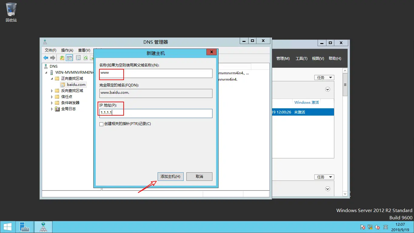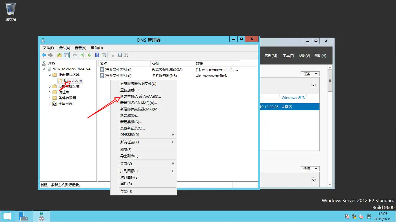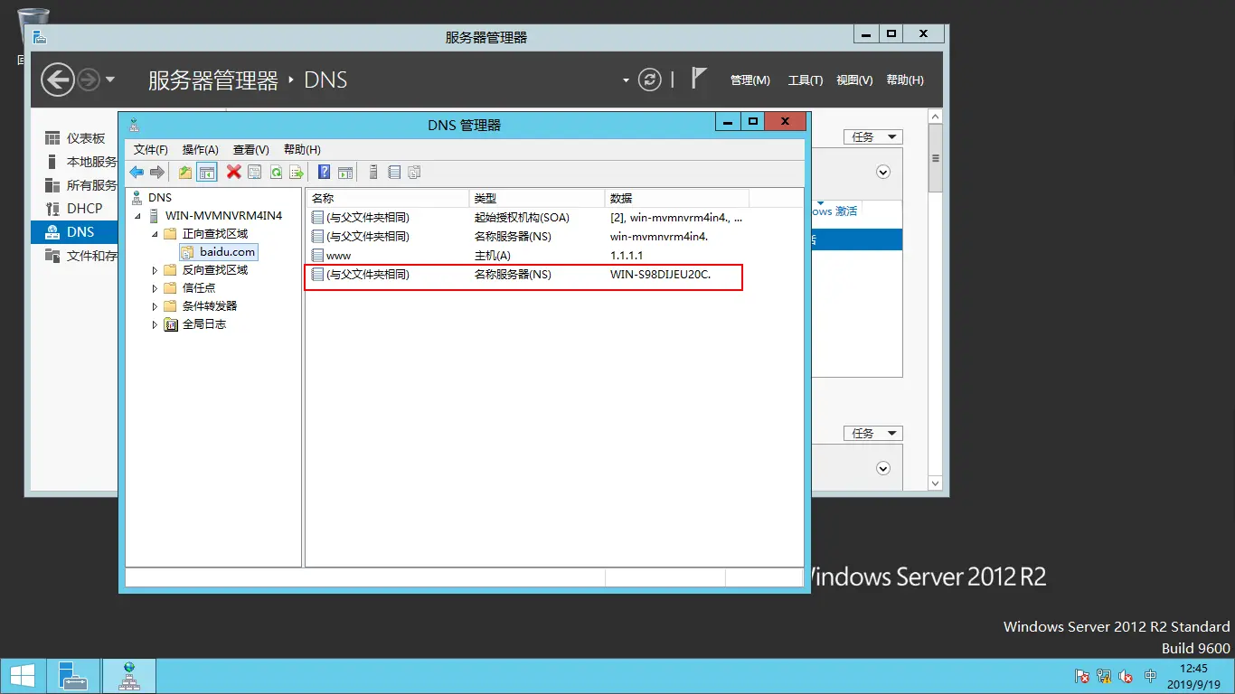 安装成功后打开DNS管理器