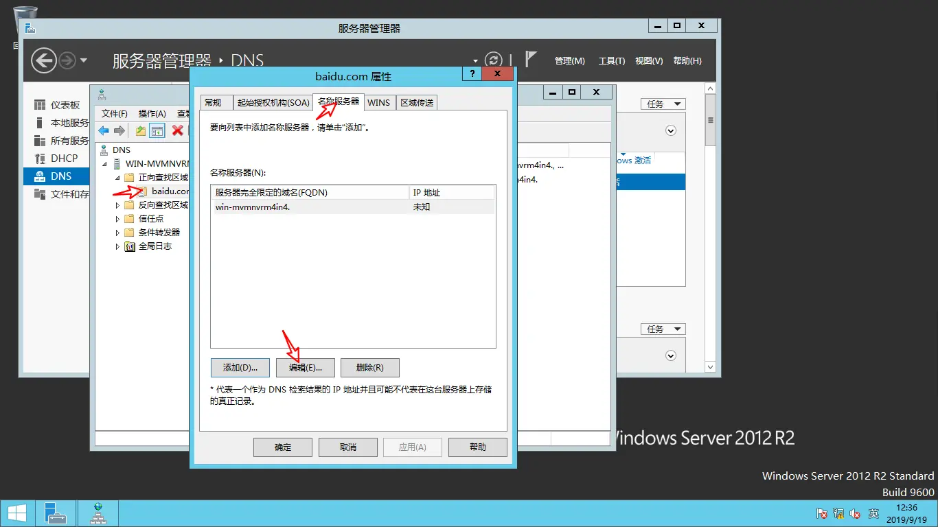 打开属性里面的名称服务器-编辑