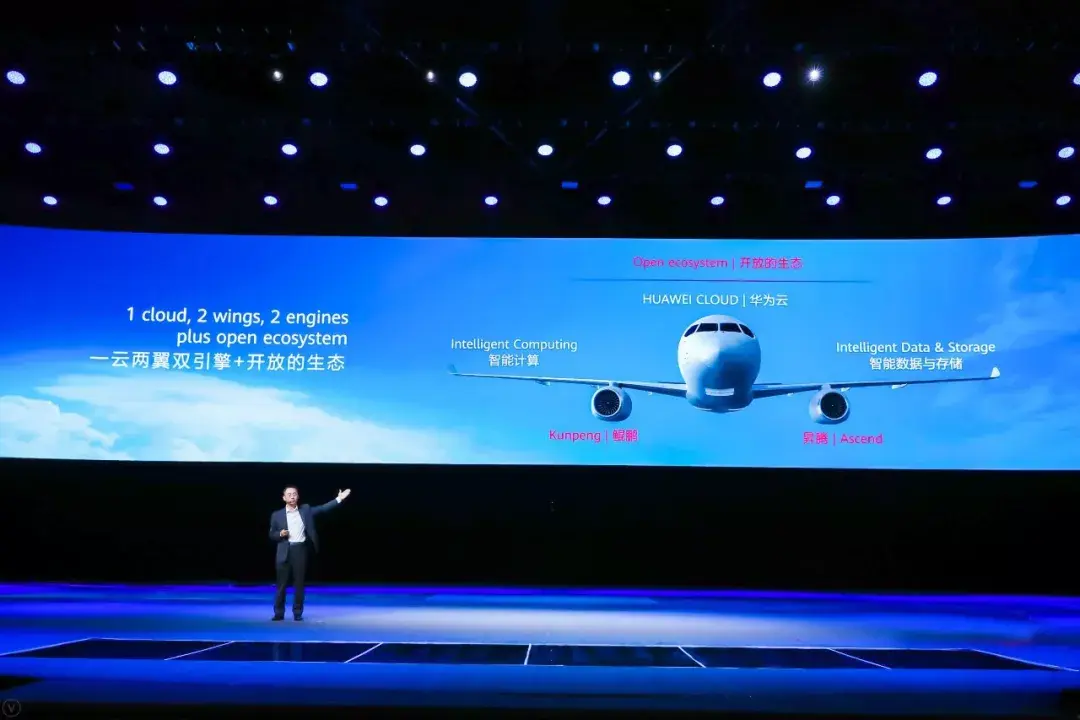 整体来看,华为计算图景可以归为“一云两翼双引擎+开放的生态”。